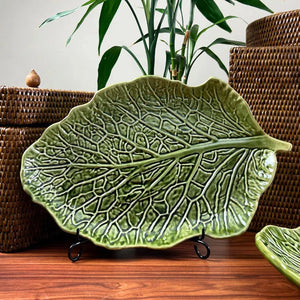 Com uma seleção de louças imponentes e sofisticadas, ideais para mesas que evoquem uma composição mais orgânica e tropical, a rusticidade elegante da linha Couve da Scalla, livremente inspirada em folhas de couve, surge reinterpretada em uma nova cor exclusiva para a Let's: o Verde Cobre!
