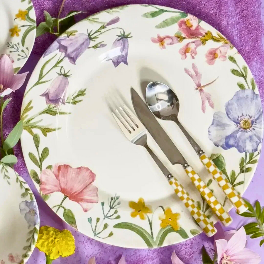 Com tons solares, detalhes artesanais e um acabamento dourado que imprime elegância, a linha Fall da Alleanza celebra as cores e sabores tropicais. O grande destaque fica para o filete em ouro aplicado à borda dos pratos com requinte, criando um contraste autêntico com os elementos botânicos e levando brilho e imponência à composição. Uma ótima opção para mesas refinadas e cheias de personalidade!