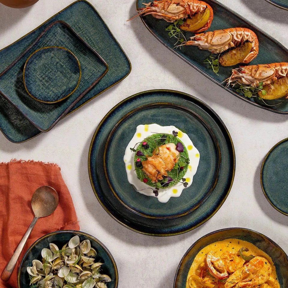 A linha Oceano da Porto Brasil é uma imersão nas profundezas do mar, onde a vastidão azul se funde com a serenidade das águas cristalinas. Inspirada pela tranquilidade das ondas, suas peças capturam a essência do oceano em cada nuance, com cores e texturas suaves que transitam entre o azul profundo e o verde translúcido, transformando a mesa em um cenário natural, envolvente e inspirador. Como um suspiro do mar, cada refeição se torna uma jornada sensorial e um refúgio de tranquilidade e conexão com a natureza.