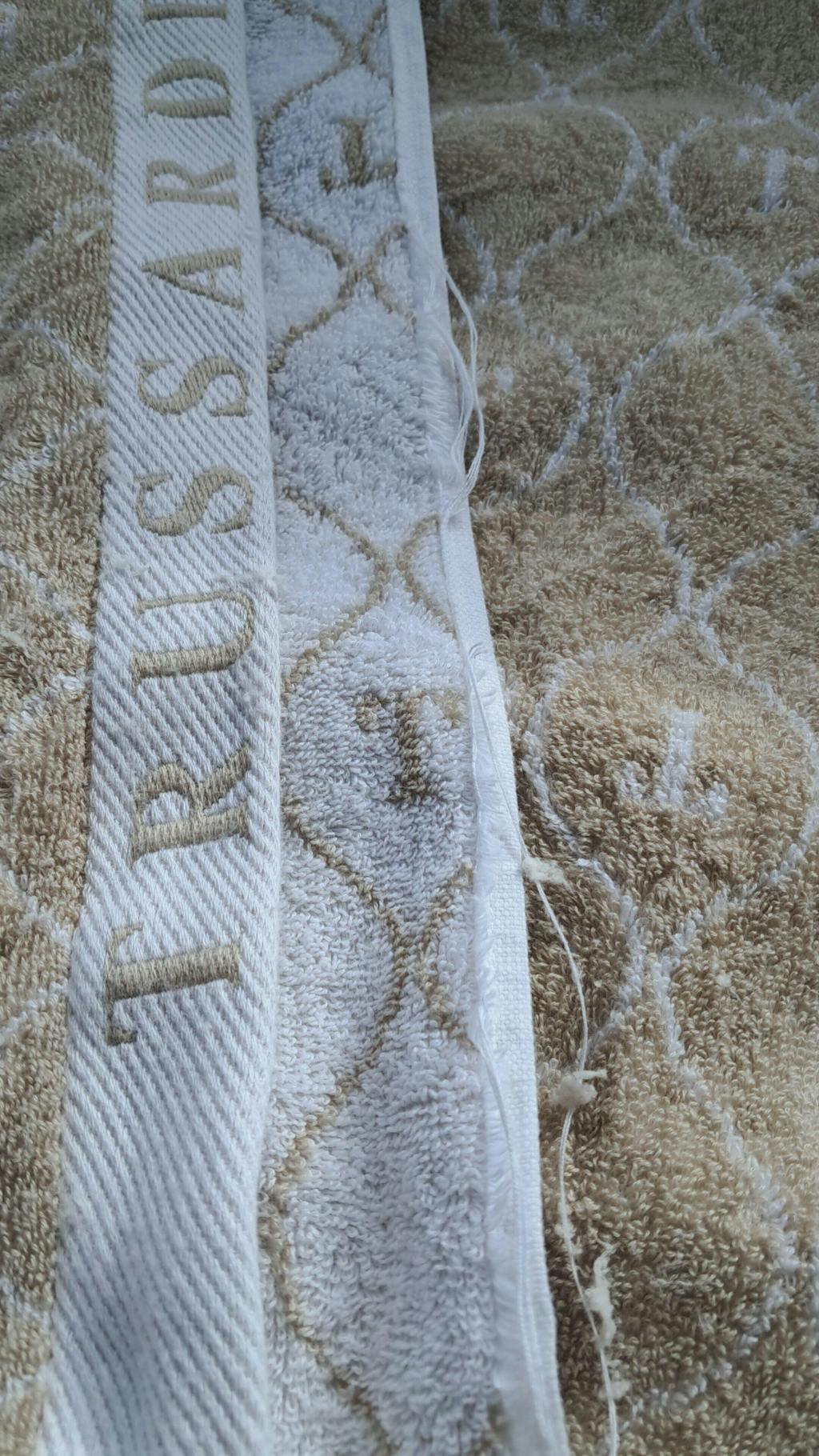 Acabamento: Super absorção; Pré-encolhida; Fio dupla torção; Jacquard Fio Tinto; Monograma Exclusivo Trussardi