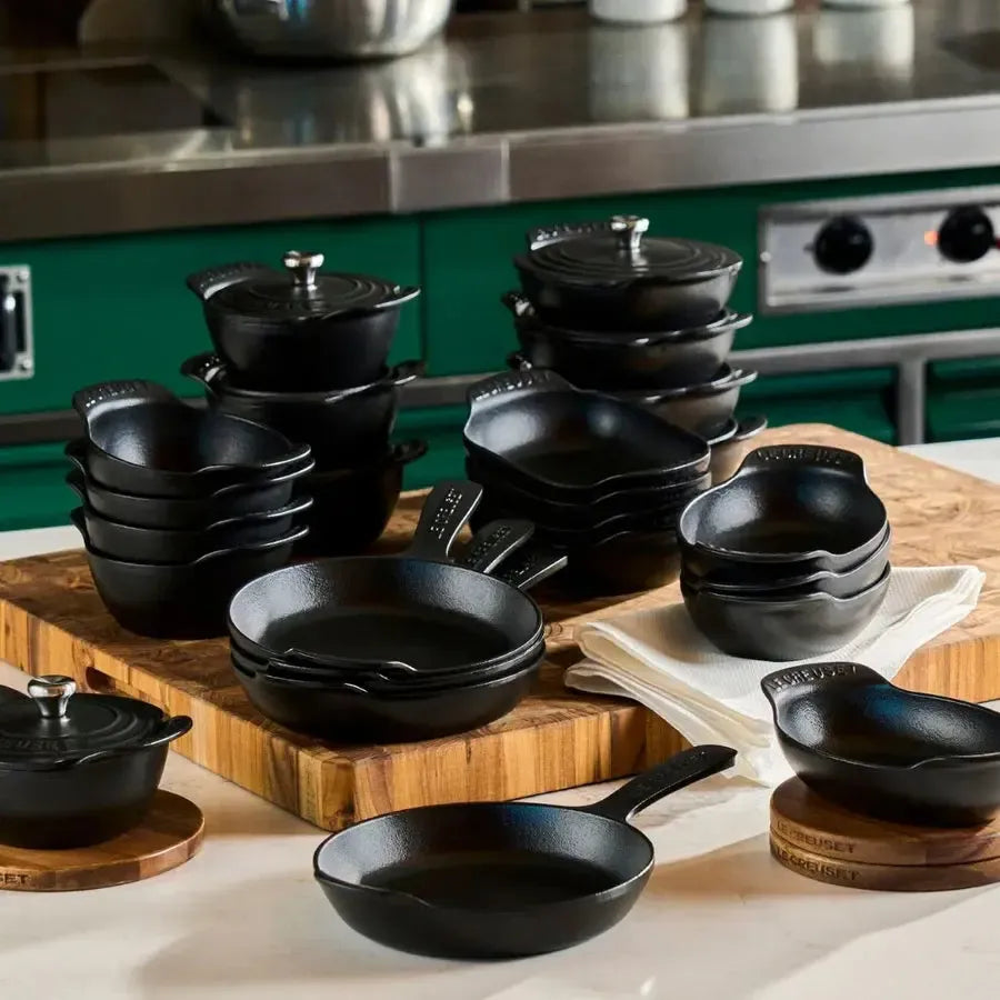 Inspirada no ambiente da alta gastronomia, a coleção Gourmand Matte Black da Le Creuset foi criada para a cozinha profissional e agora chega em kits exclusivos para transformar também a sua casa.