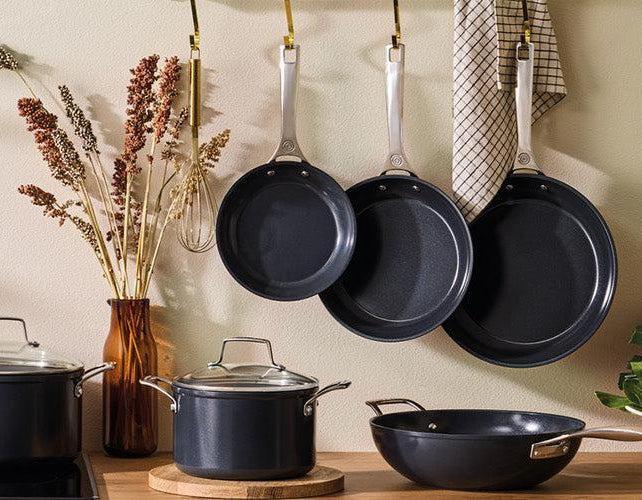 Com revestimento cerâmico de base mineral, livre de componentes nocivos à saúde e ao meio ambiente, a Le Creuset apresenta Essential Nonstick Ceramic (ENSC), linha de panelas antiaderentes com alma sustentável, performance profissional e a elegância inconfundível da marca.