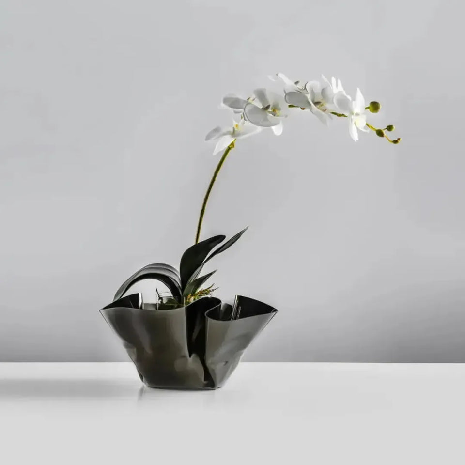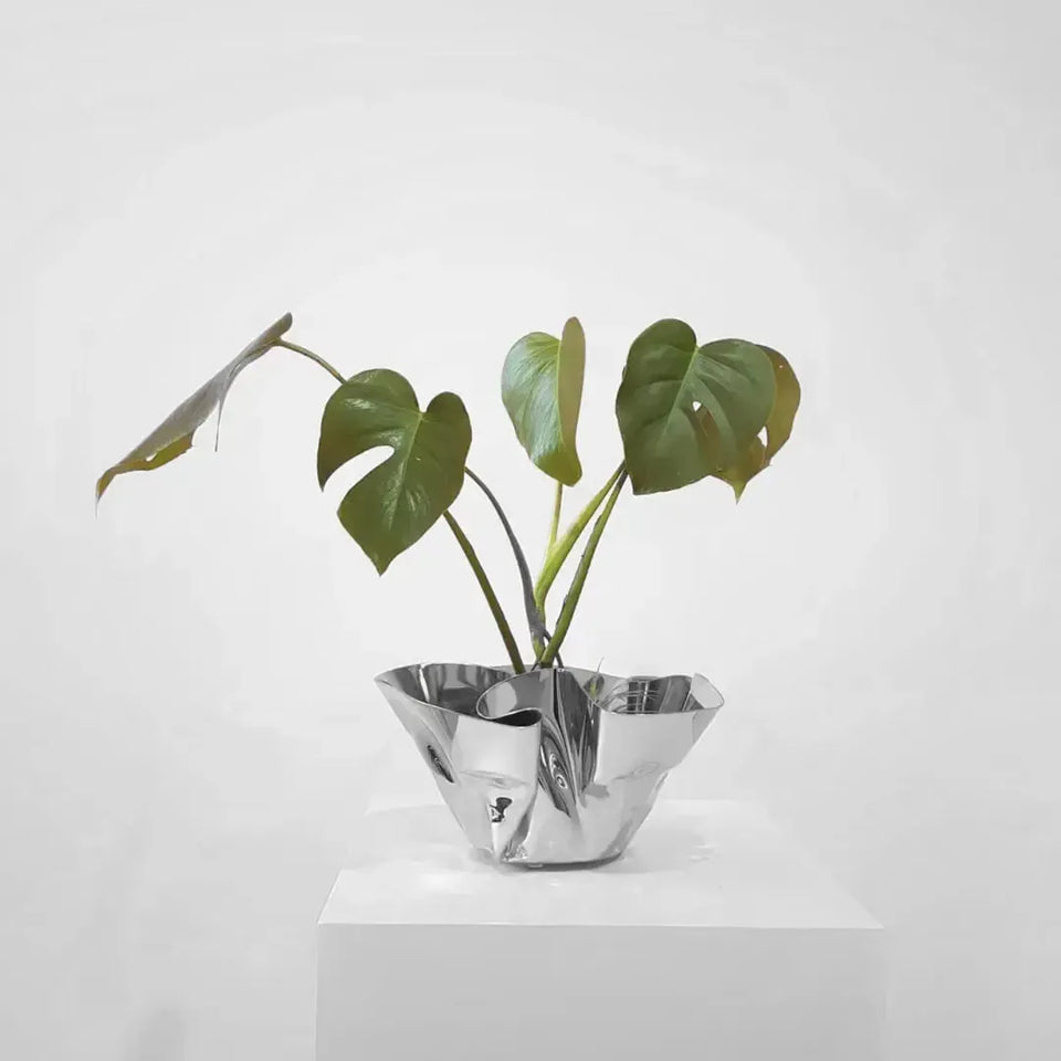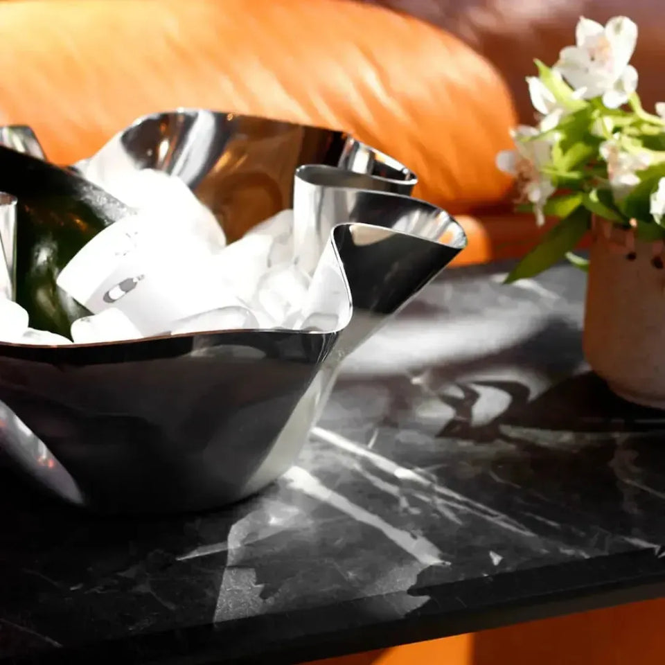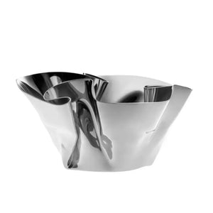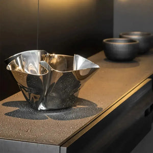O Cachepot / Fruteira / Balde de Gelo Fiori Inox da Riva é uma verdadeira obra de arte que transforma a rigidez do aço inox em um design elegante e flexível. Integrada à Coleção Fiori, essa peça impressiona pela maneira como explora a maleabilidade do metal, com dobras cuidadosamente elaboradas por artesãos que desafiam a resistência do material. À primeira vista, suas curvas parecem delicadas, mas ao toque, revelam o peso e a durabilidade do inox, contrastando com os sulcos profundos que acrescentam textura e sofisticação. Com seu brilho intenso e fluidez, a Riva se destaca como uma fusão perfeita de arte e funcionalidade, ideal para realçar suas sobremesas em qualquer ocasião.