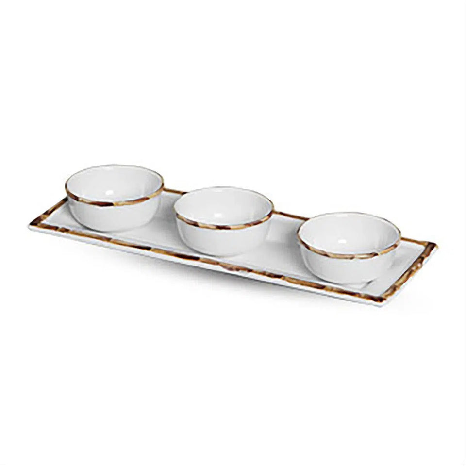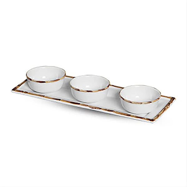 O resultado são peças marcantes e cheias de personalidade, como este Jogo com 3 Petisqueiras em Cerâmica com Bandeja da linha Bambu da Scalla. Perfeito para servir variados aperitivos de forma prática e elegante, como pastinhas, castanhas, frutas secas ou molhos, o conjunto proporciona uma composição organizada, funcional e visualmente impactante. A bandeja central confere ainda mais charme e presença à peça, tornando-a ideal para receber com sofisticação em qualquer ocasião.