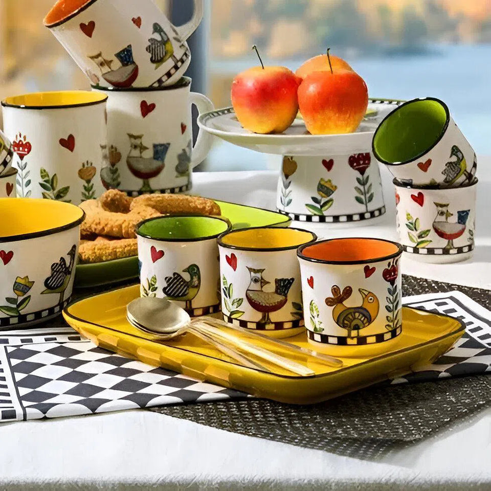 Com charme irreverente, cores vibrantes e alma artística, a linha carrega a estética refinada do design artesanal combinada com um humor sutil, inspirado no imaginário popular italiano, que encanta e convida a sorrir, reunir e saborear momentos que ficam na memória.