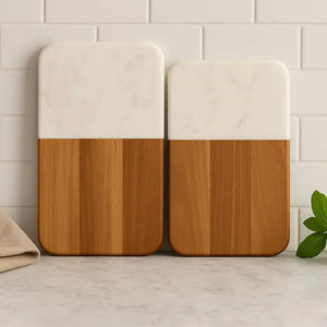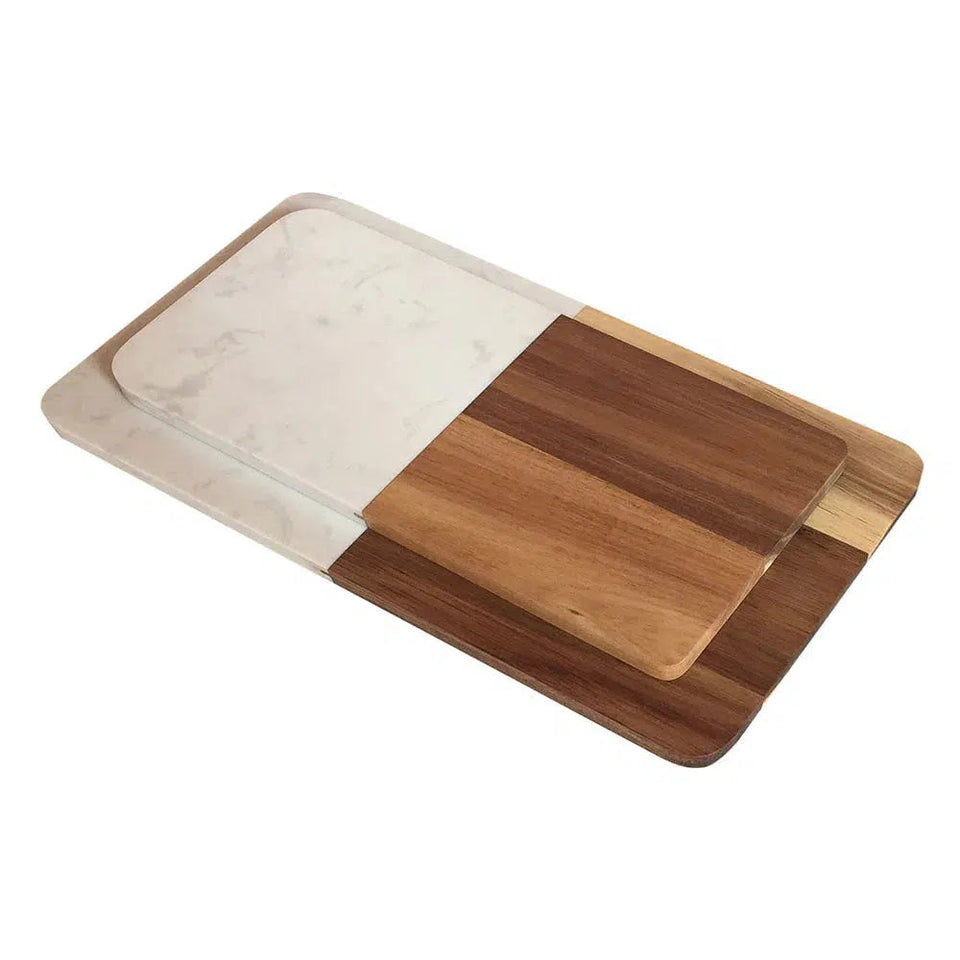 Ideal para disposição de petiscos, frios, queijos, acompanhamentos dos aperitivos, entre outros, esse Conjunto de 2 Tábuas Retangulares para Servir de Madeira e Mármore Branco garante uma mesa posta convidativa, sofisticada e elegante.