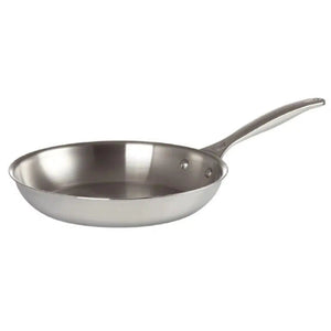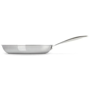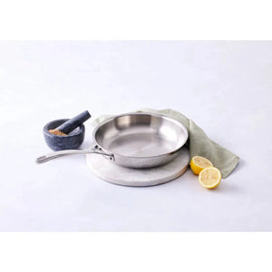 Brilhante e durável, a construção de camada tripla apresenta um núcleo de alumínio da base ao aro para distribuição de calor superior, enquanto o exterior leve de aço inoxidável com infusão de titânio resiste a queimaduras e corrosão em temperaturas mais altas. Utilize esta frigideira para dourar, cozir e caramelizar os seus ingredientes preferidos e outras preparações culinárias do dia-a-dia.