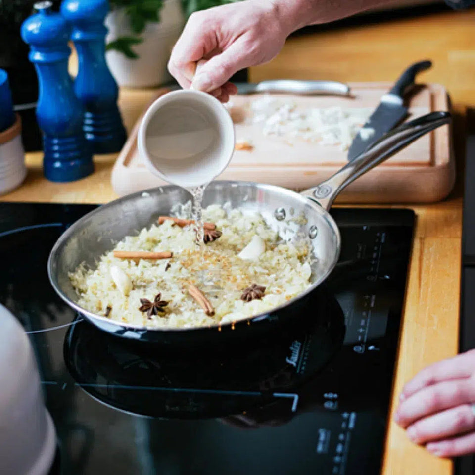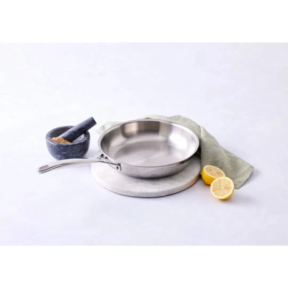 A Frigideira Funda 3-Ply Signature 24cm da Le Creuset em aço inoxidável é versátil e perfeita para uma variedade de preparos, de carnes grelhadas a legumes salteados, oferecendo um desempenho excepcional. Com construção de camada tripla, elas possuem um núcleo de alumínio que garante distribuição uniforme de calor, enquanto o exterior leve de aço inoxidável com infusão de titânio é resistente a queimaduras e corrosão, mesmo em altas temperaturas. Sua borda inovadora sem gotejamento facilita o uso e a limpeza, tornando esta frigideira uma escolha prática e durável para qualquer cozinha.