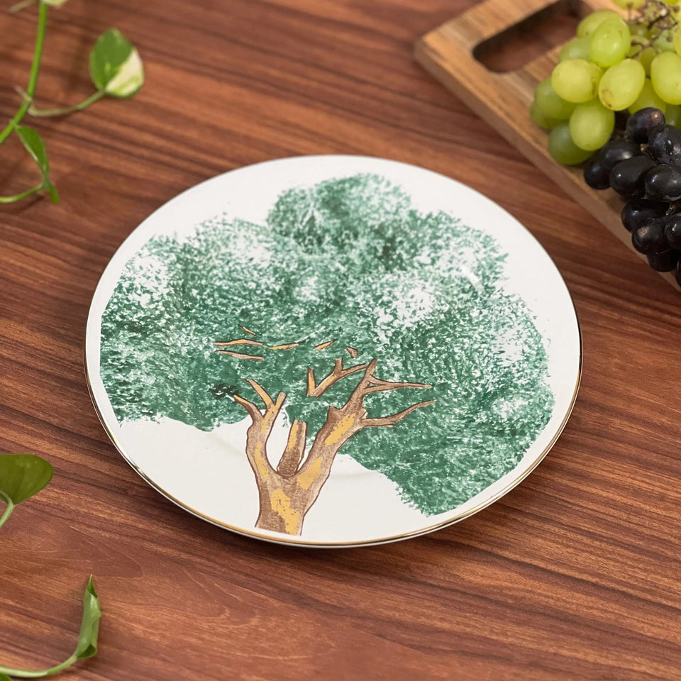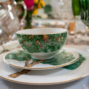 As peças contam com um design elegante e sofisticado combinados com um acabamento refinado, traduzindo bom gosto e imponência. Cada prato oferece um padrão clássico e uma decoração rica em detalhes, com uma belíssima e majestosa árvore de ipê impressa em sua superfície, além de um filete em ouro 24k que dá um toque a mais de distinção e classe a peça.
