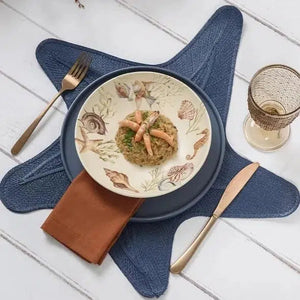 Esse Jogo Americano Brazil Nature Estrela do Mar Marinho 50x51cm da Copa&Cia sem dúvida irá valorizar o design das louças e os complementos da mesa posta, dará aquele toque visual a refeição que será servida, pois também despertam o sentido visual.