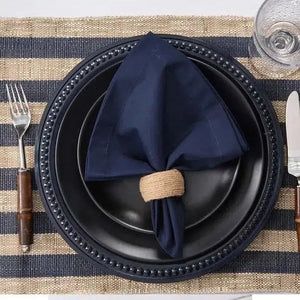 Esse Jogo Americano Rami Listras Marinho 50x37cm da Copa&Cia sem dúvida irá valorizar o design das louças e os complementos da mesa posta, dará aquele toque visual a refeição que será servida, pois também despertam o sentido visual.