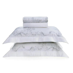 Acabamento: Estamparia Digital; Tecido sanforizado e mercerizado; Fronha com 4 abas e estampa dimensionada com ponto ajour; Arte desenvolvida á mão na Itália; Confeccionado em fibra de Bambu; Toque acetinado