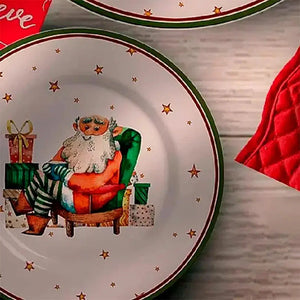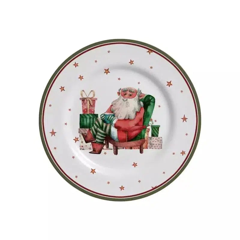 Jogo 6 Pratos de Sobremesa Cerâmica Father Christmas 19cm Alleanza