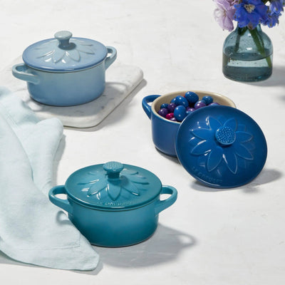 Quer seja usado para servir porções individuais de um acompanhamento ou simplesmente para decorar uma bancada vazia ou estante de cozinha, a Mini Cocotte Sunflower adiciona cores alegres e vivas nessa primavera com o estilo clássico Le Creuset à cozinha ou à mesa.