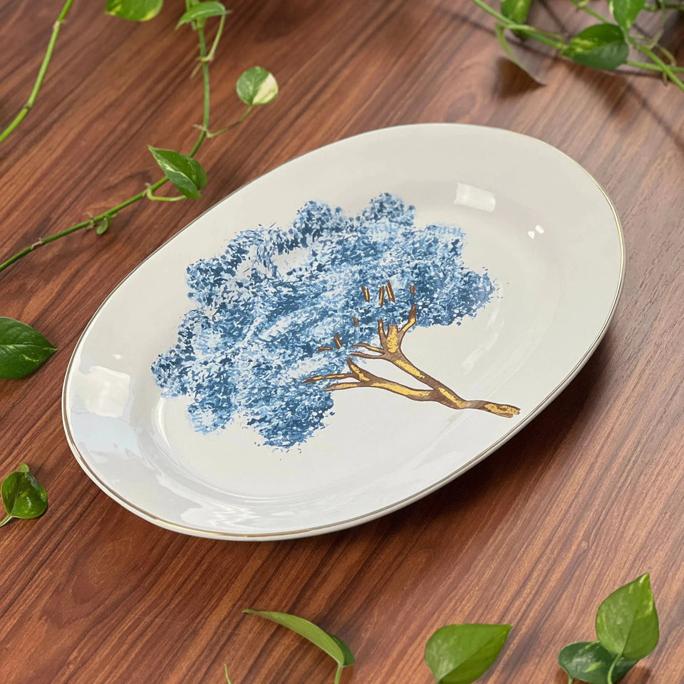 Ideal para apresentar em sua mesa posta e servir uma variedade de alimentos, esta travessa peça conta com um design elegante e sofisticado combinado com um acabamento refinado, traduzindo bom gosto e imponência. Cada peça oferece um padrão clássico e uma decoração rica em detalhes, com uma belíssima e majestosa árvore de ipê impressa em sua superfície, além de um filete em ouro 24k que dá um toque a mais de distinção e classe.