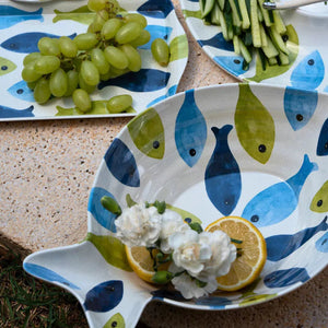 Essa Saladeira em Melamina com Desenho de Peixes 35,5x24,5x8cm é o utensílio ideal para complementar a sua mesa em todas as refeições com familiares e amigos.