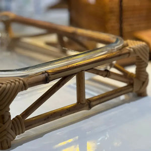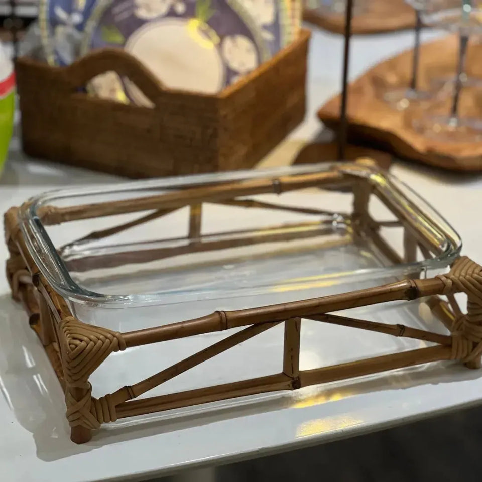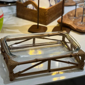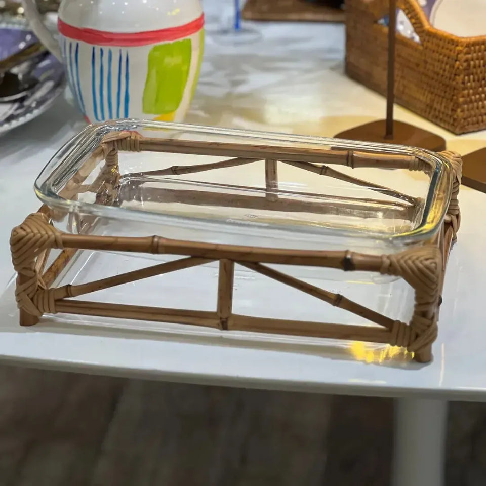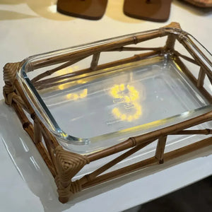 O Suporte Retangular Médio de Bambu Rajado com Refratário de Vidro da Rico Bambu é a escolha ideal para servir com praticidade e elegância. Com estrutura em bambu natural de acabamento rajado e refratário de vidro resistente, a peça combina beleza, funcionalidade e durabilidade, sendo perfeita para apresentar pratos quentes ou frios com charme em qualquer ocasião.