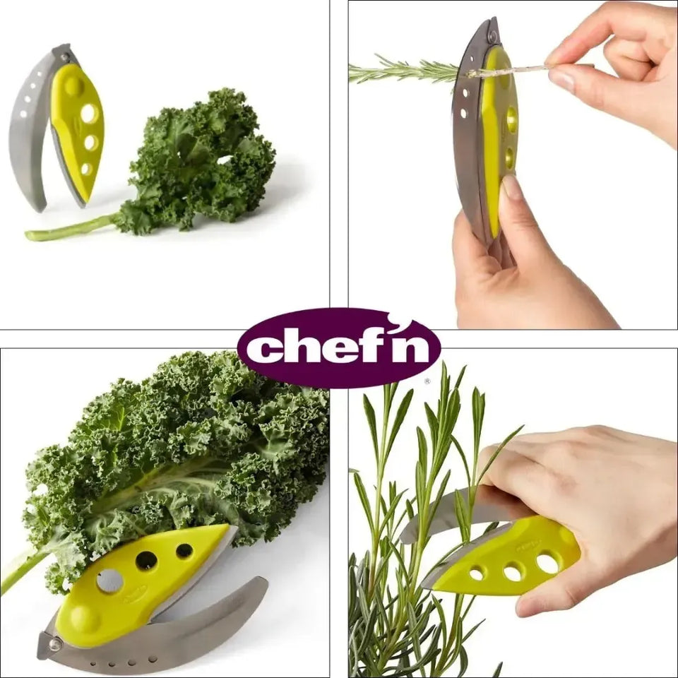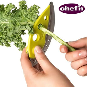 A Tesoura e Removedor de Ervas 2 em 1 da Chef'n é a ferramenta 2 em 1 ideal para quem busca praticidade e agilidade na cozinha. Com design compacto e funcional, ele remove folhas de couve, acelga, ervas e outros vegetais dos caules com rapidez, além de contar com uma lâmina integrada para fazer cortes precisos. Basta inserir a haste nas aberturas e puxar — simples, rápido e sem bagunça. Perfeito para ervas lenhosas como alecrim, tomilho e orégano, também é excelente para preparar receitas saudáveis como chips de couve. Um utensílio versátil que economiza tempo e valoriza o sabor natural dos alimentos.