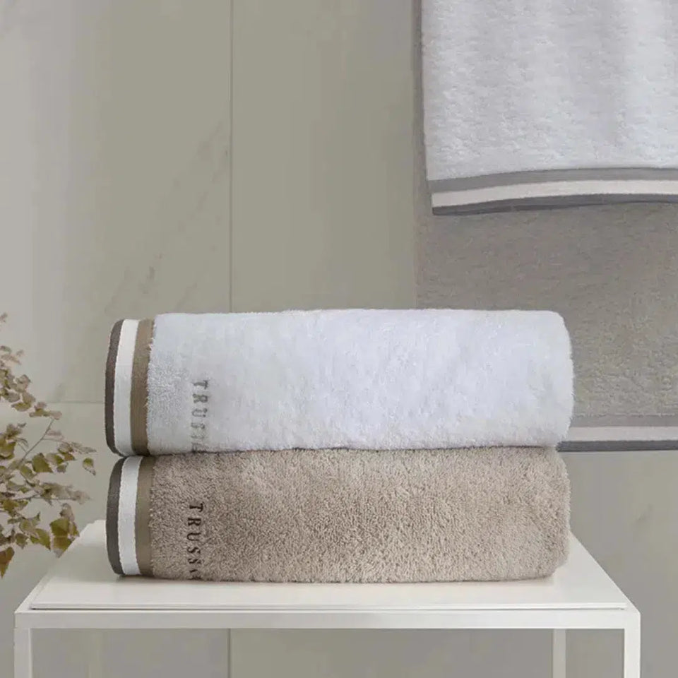 A Toalha Banhão Montello Branca / Bege da Trussardi, exibe um design exclusivo que harmoniza o clássico e o contemporâneo, destacando-se pelas listras na bainha que conferem um toque de sofisticação e autenticidade aos ambientes. Combinando elegância e funcionalidade, a toalha é confeccionada com fios de algodão tratados por tecnologias exclusivas, o que resulta em uma peça incrivelmente macia, com alta absorção e durabilidade. Perfeita para quem busca adicionar um toque de luxo e requinte aos seus espaços, a Toalha Montello é a escolha ideal para transformar seu banheiro em um ambiente de classe e conforto.