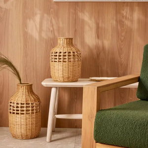 Confeccionado em Bambu de alta qualidade, este vaso possui um acabamento impecável que adiciona sofisticação e estilo a qualquer ambiente. Sua cor neutra e design contemporâneo permitem que ele se adapte harmoniosamente a diferentes estilos de decoração, desde os mais modernos até os mais tradicionais.