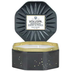 A mistura de cera de coco limpa e ardente da Voluspa é despejada à mão em uma lata decorativa coberta com uma tampa que mantém a vela livre de poeira quando não estiver em uso. Os três pavios permitem que você desfrute da fragrância por até 50 horas. As velas são despejadas à mão nos Estados Unidos e apresentam a mistura exclusiva de cera de coco de queima limpa e pavios 100% naturais. Os produtos são livres de ftalatos, pesticidas, parabenos e sulfatos, e nunca são testados em animais. Dê um novo propósito a lata transformando-o em uma lembrança após a última queima.
